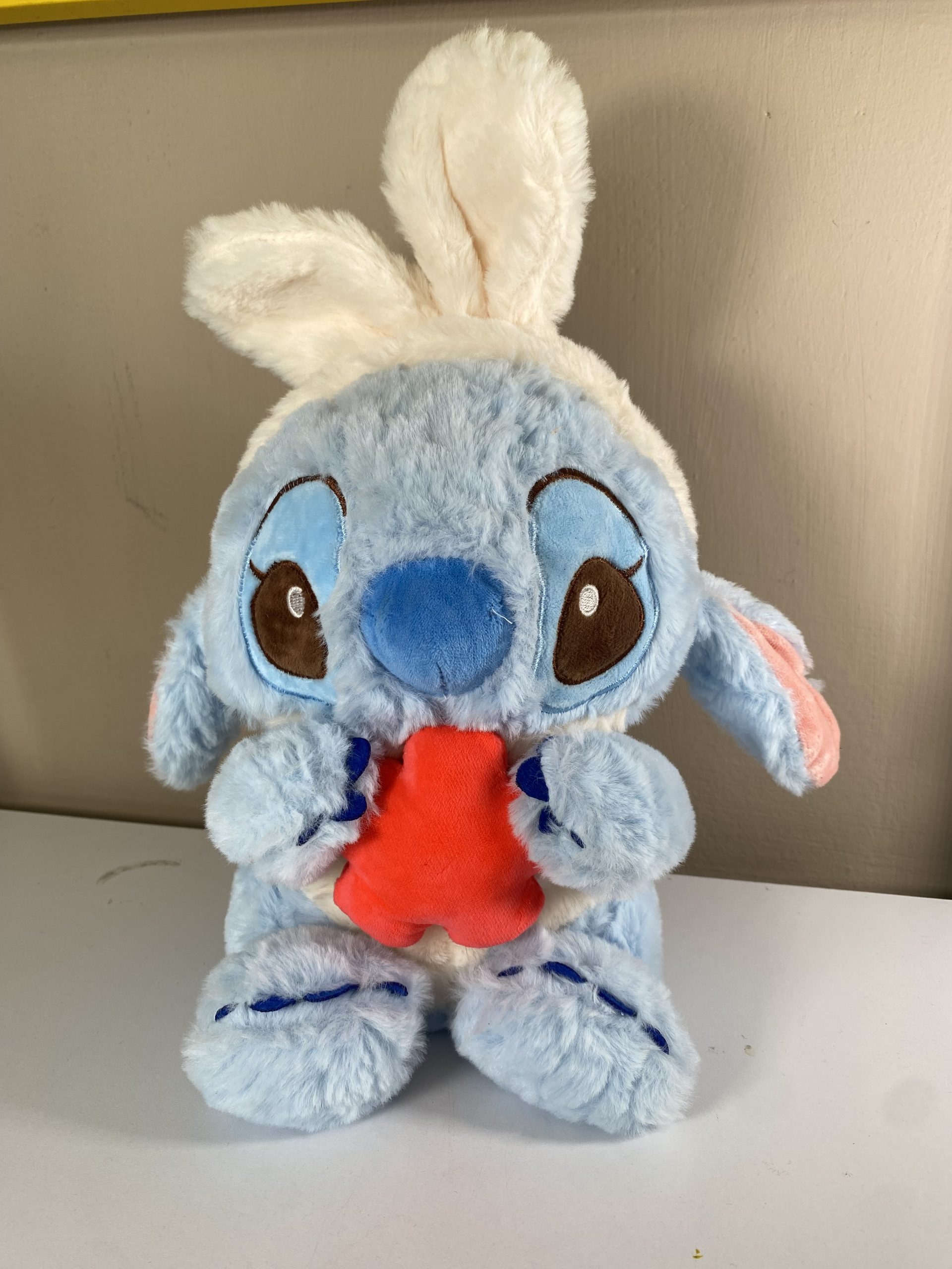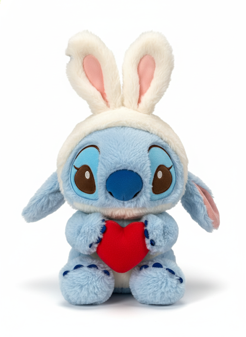 PELUCHE DE STITCH CON OREJAS DE CONEJO Y SOSTENIENDO UN CORAZÓN