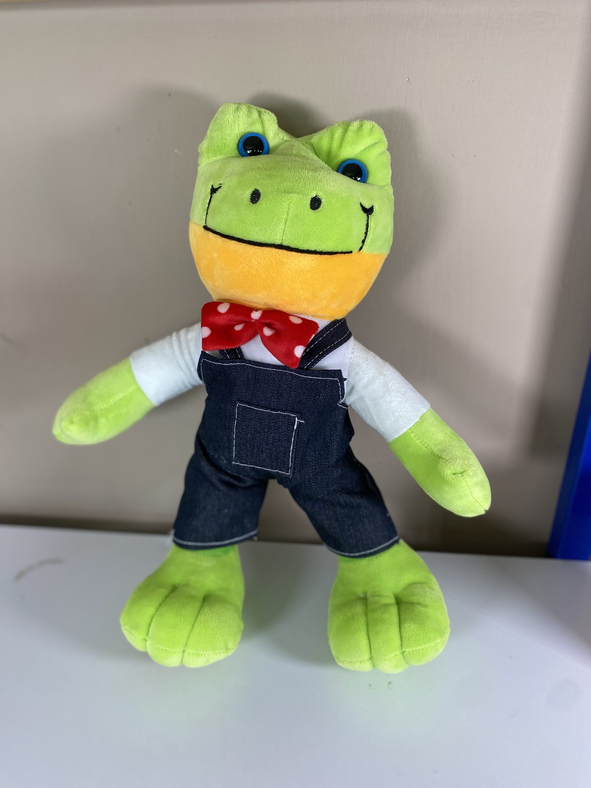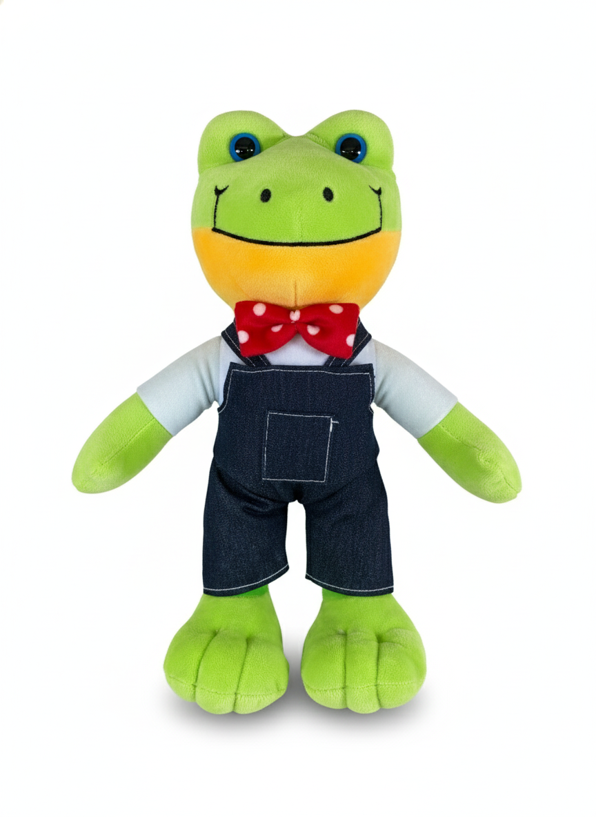 RANA CON OVEROL Y MOÑO ROJO